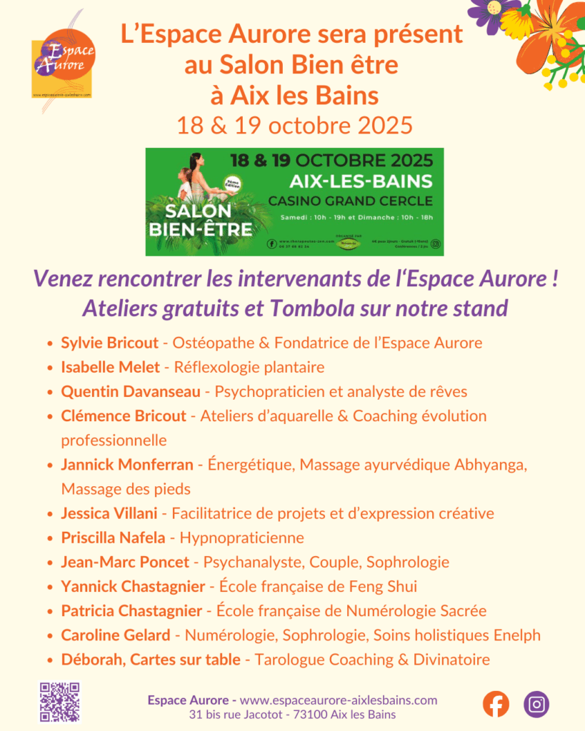 26.09.2025 – L’Espace Aurore sera présent au Salon Bien être au Casino d’Aix les Bains, les 18 & 19 octobre !